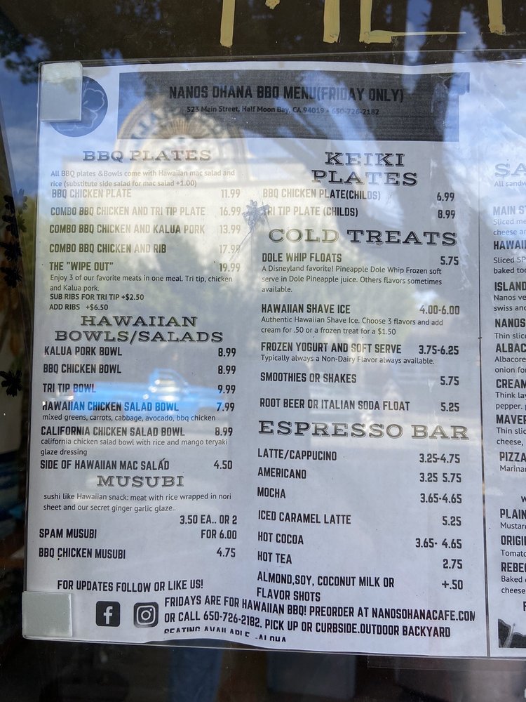 Welcome to Nano's, a hidden gem in Half Moon Bay that brings the vibrant flavors of Hawaii to the West Coast. Conveniently located at 523 Main St, this charming spot offers a diverse menu designed for food enthusiasts.